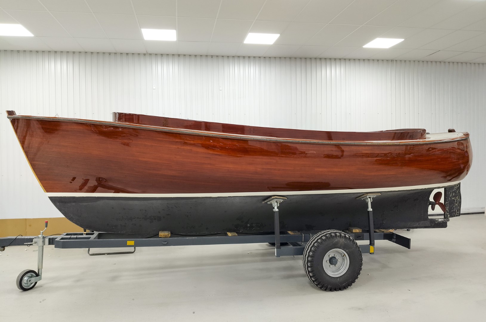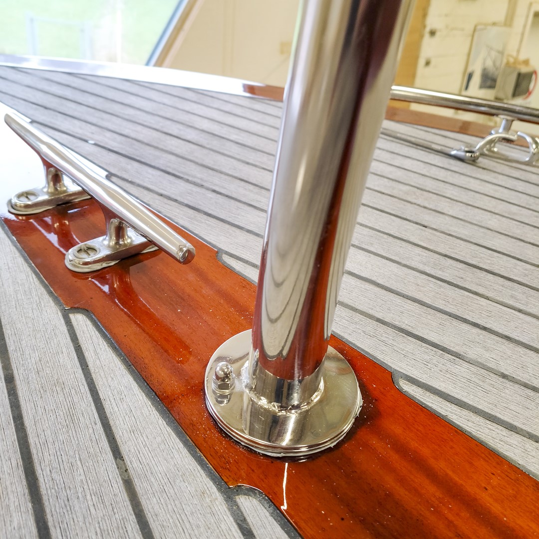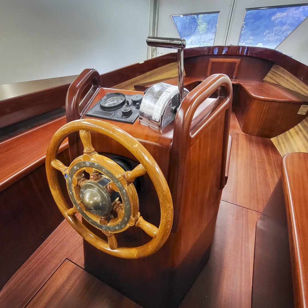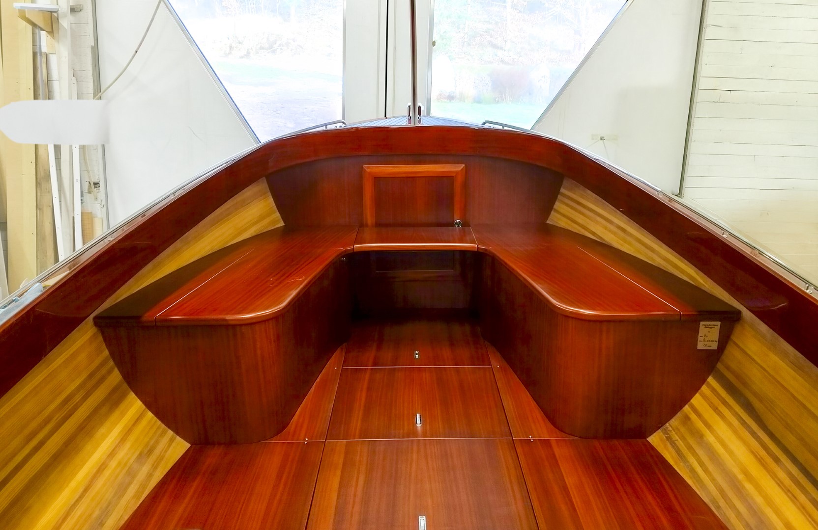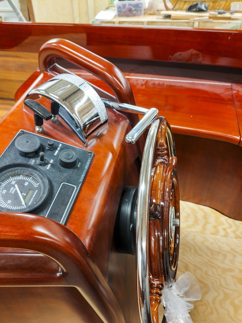 Jennipher, en 28 fots daycruiser. Designad av Ocke Mannerfelt. Sandwich konstruktion i glasfiber med ett tunnt magohnyfaner i epoxyn. Njut av ”träbåt” som inte behöver slipas och lackas!